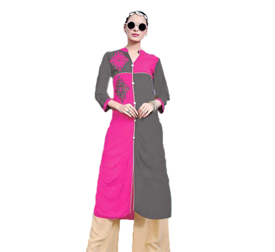 Smart Ethnic Designer Pink and Grey Colored Rayon Kurti with Buttons