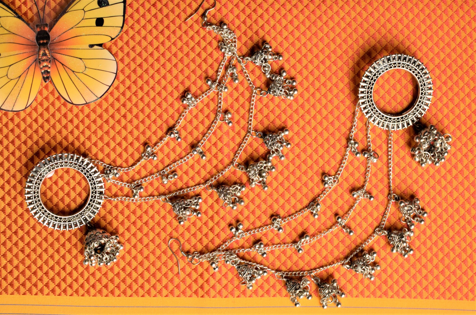 German Silver Chakra Stud Jhumka Bahubali Earring