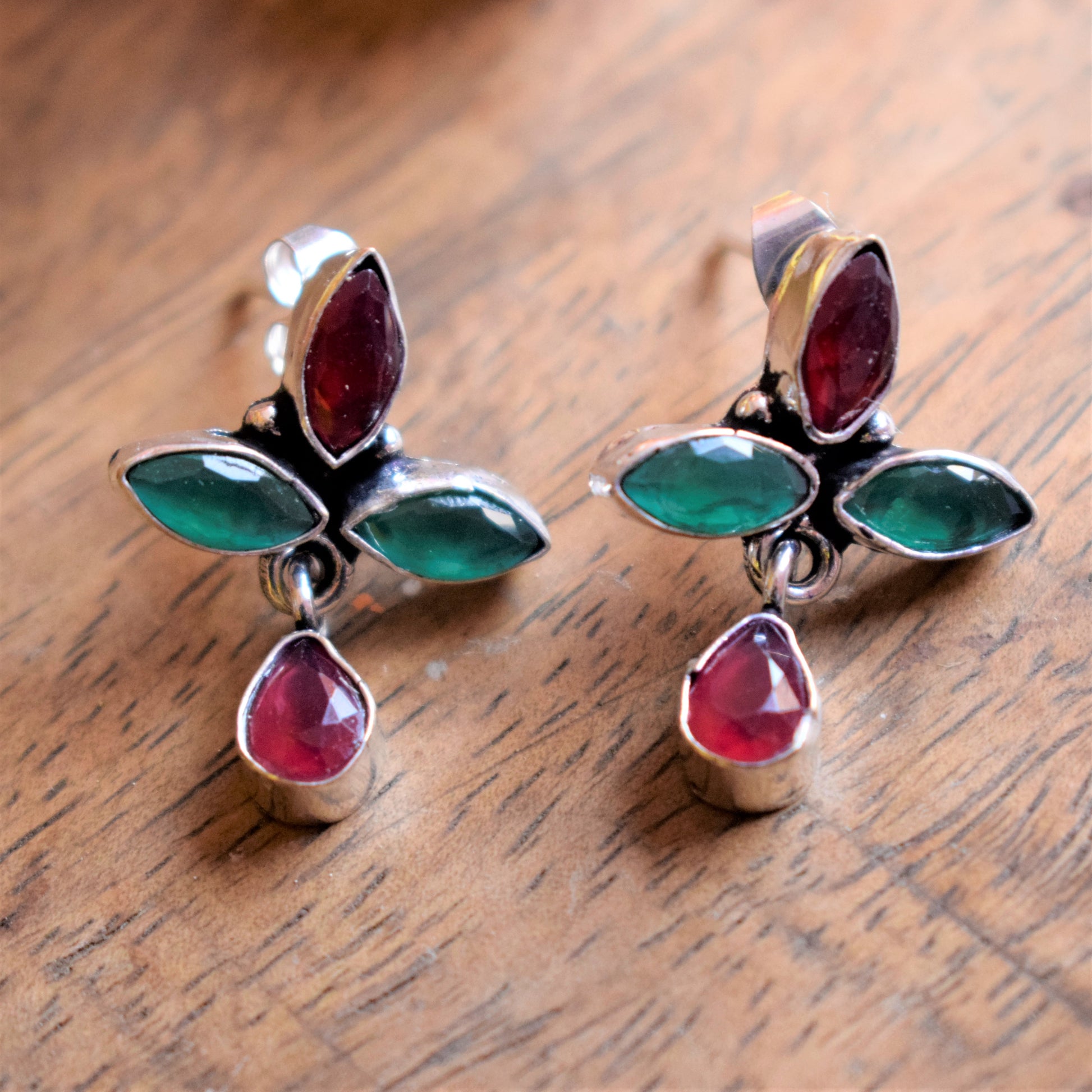 German Silver Flower Cluster Earring (Gemstone)