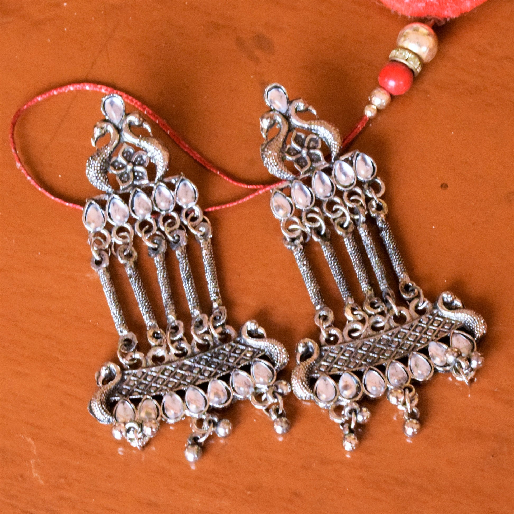 Beautiful Swan German Silver Earrings in Chandelier Design