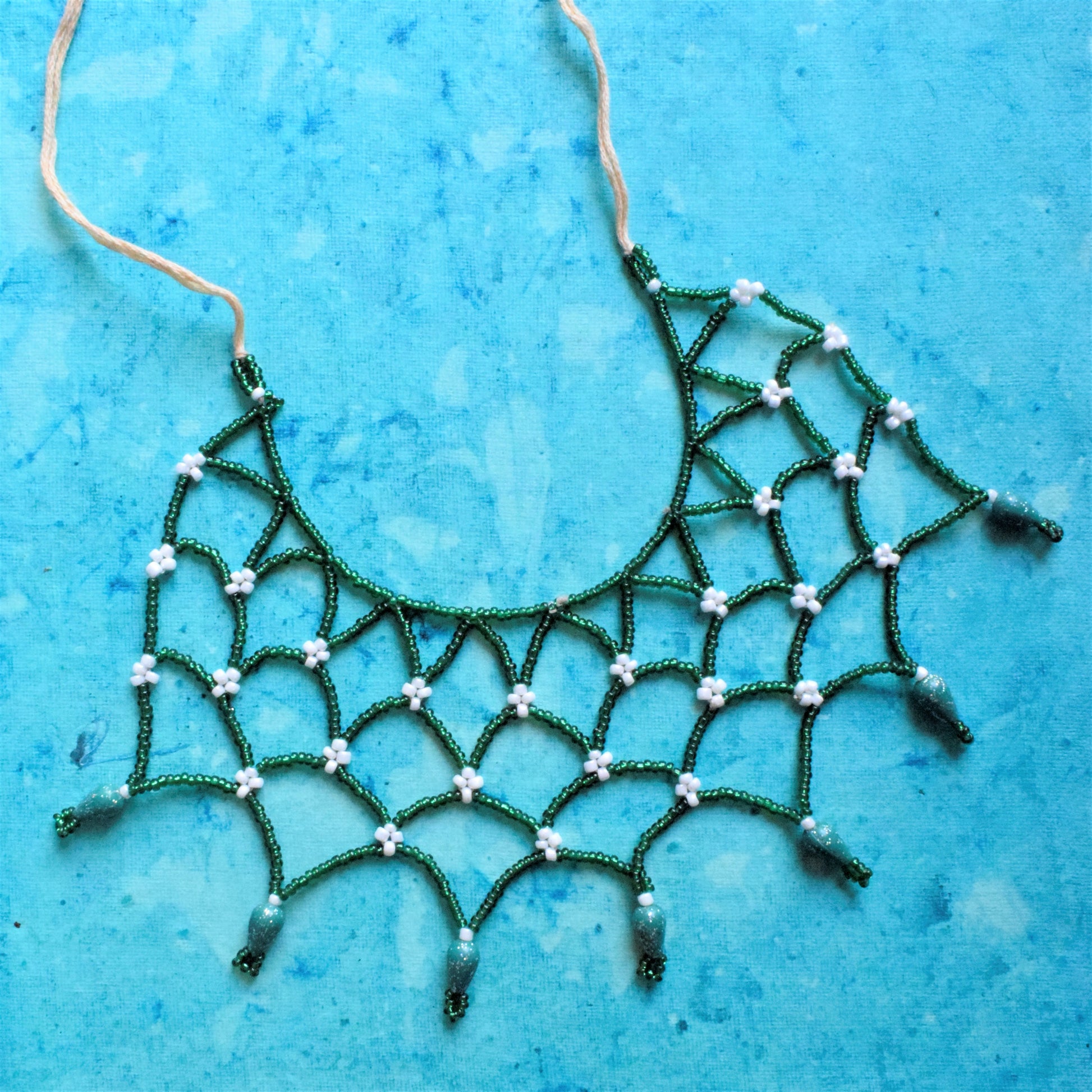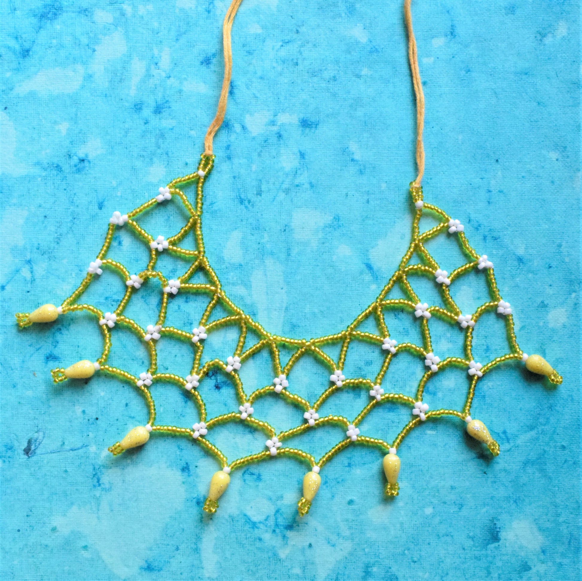Green and Yellow Bead Fish Net Crochet Choker Necklace