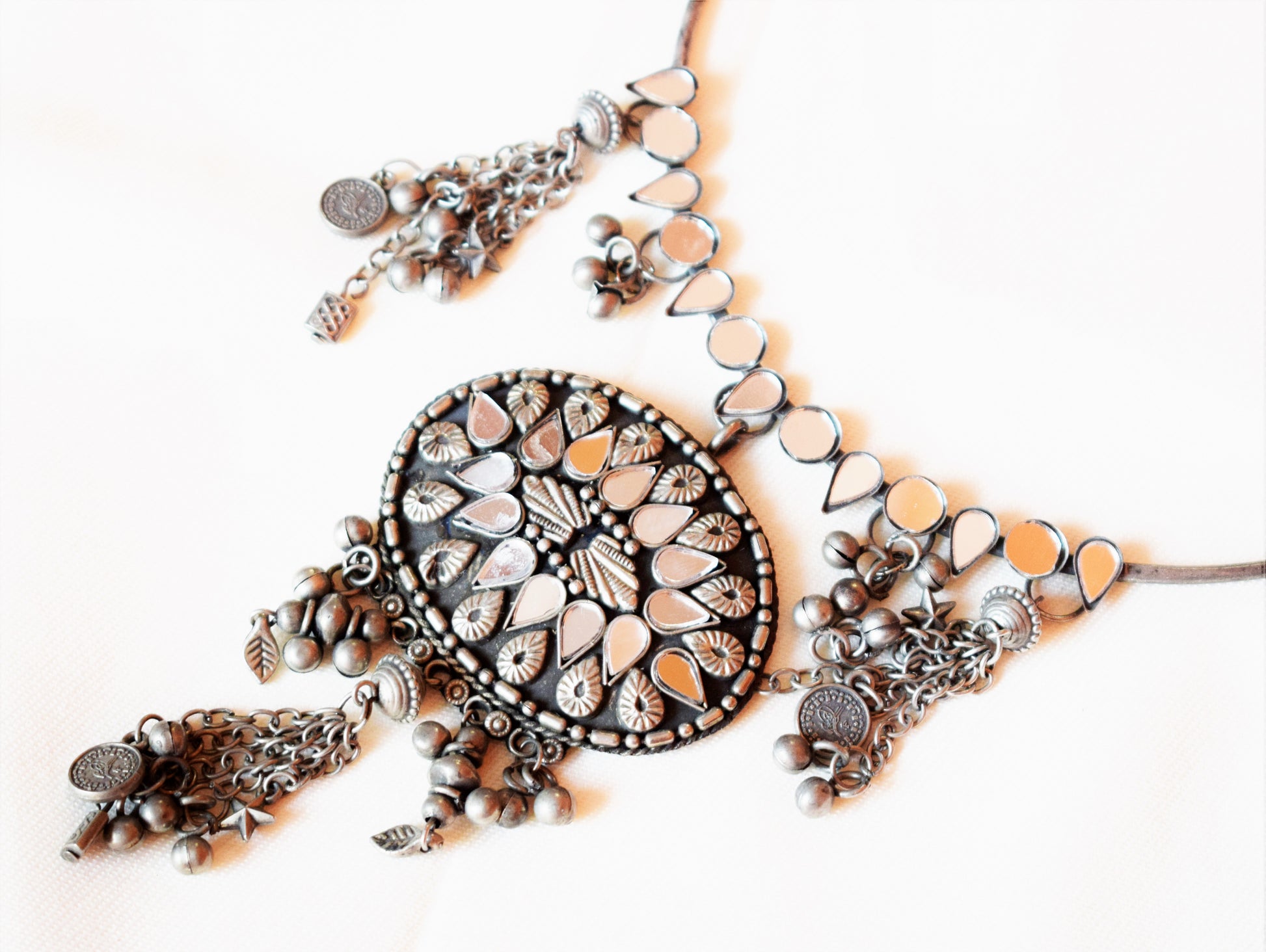 Vintage Choker Necklace Set with Mirror Work and Charm Tassels in Hasli Design