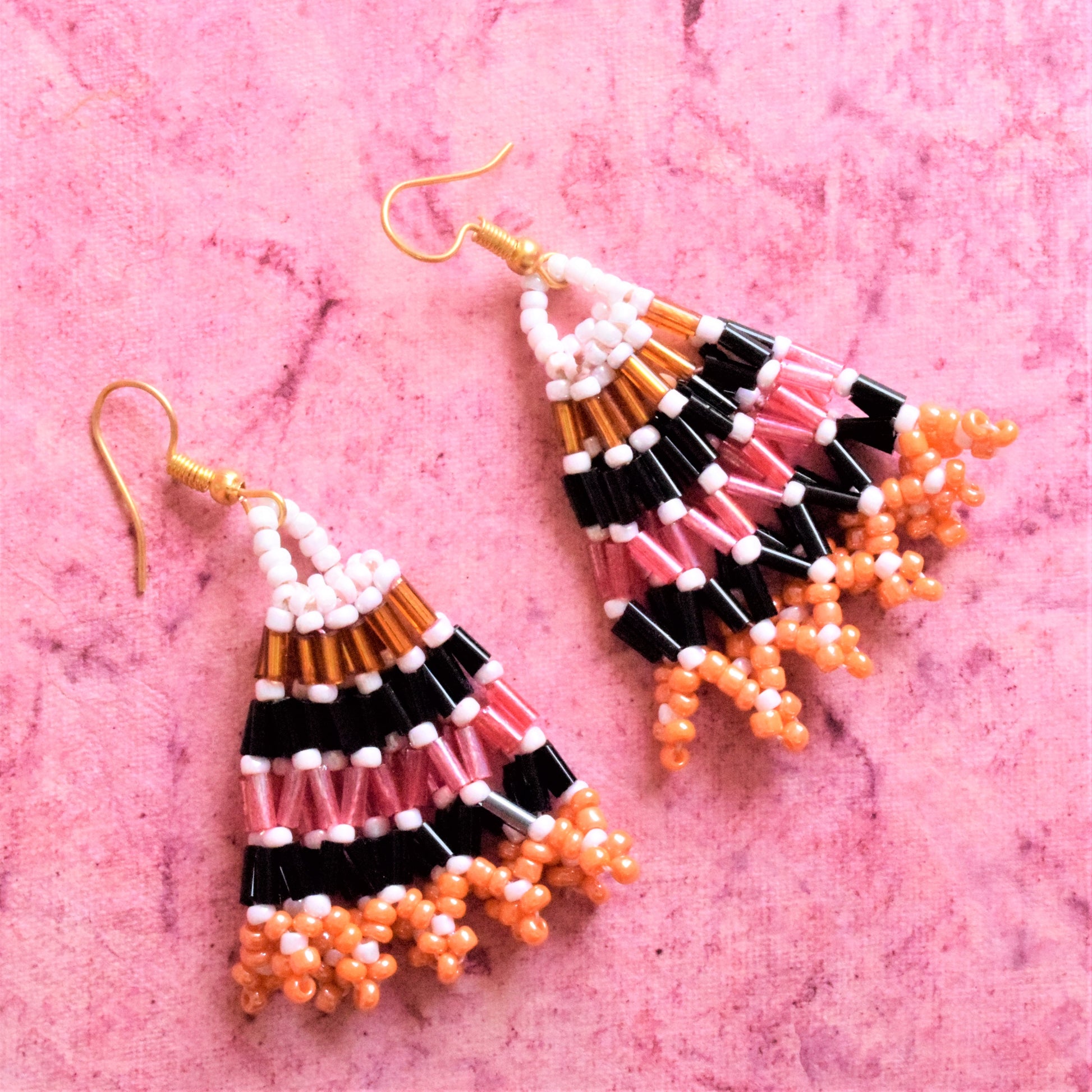 Multicolored Earrings with Bead Craft in Jhumka Pattern