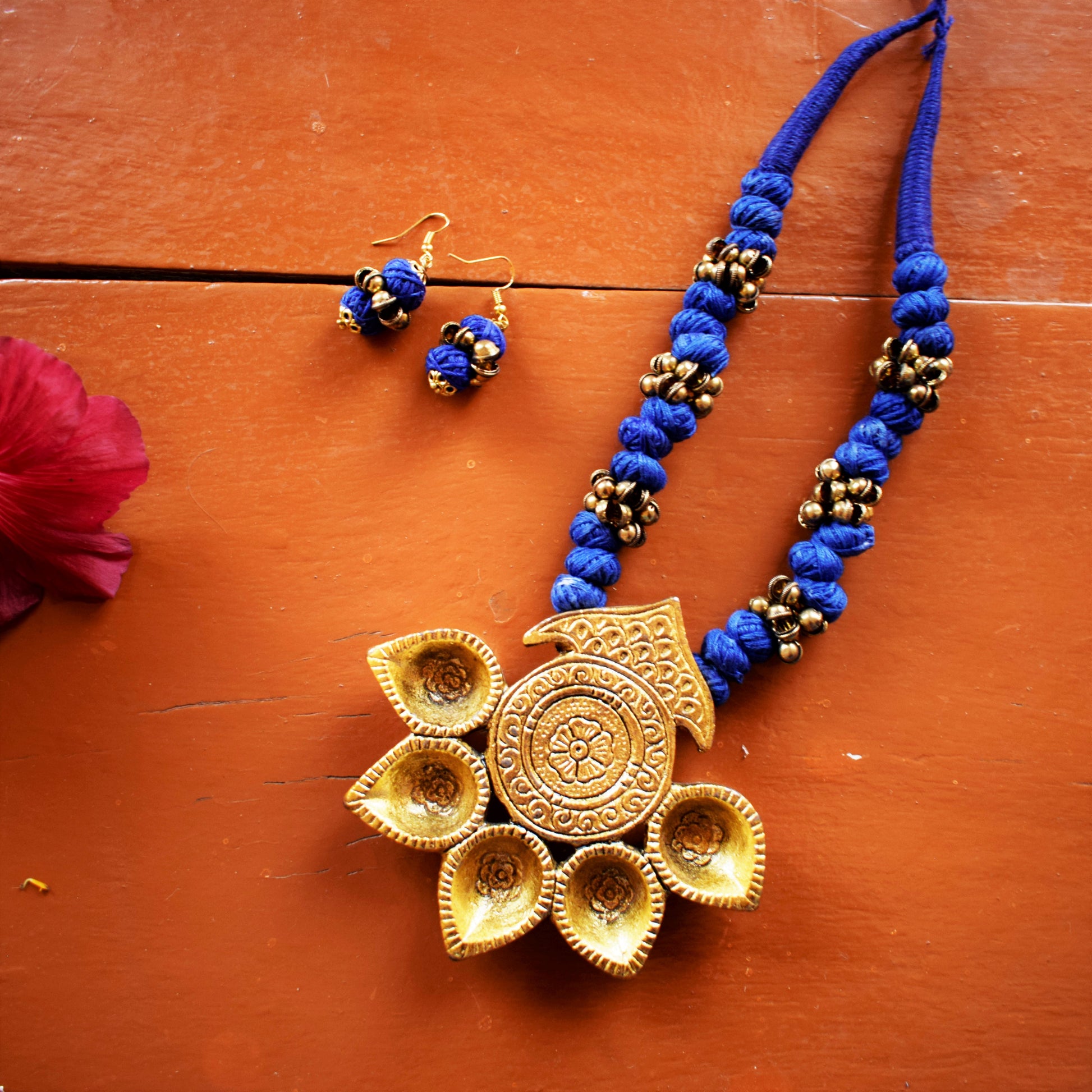 Panchdeep Brass Pendant Necklace with Ghungroo Earrings