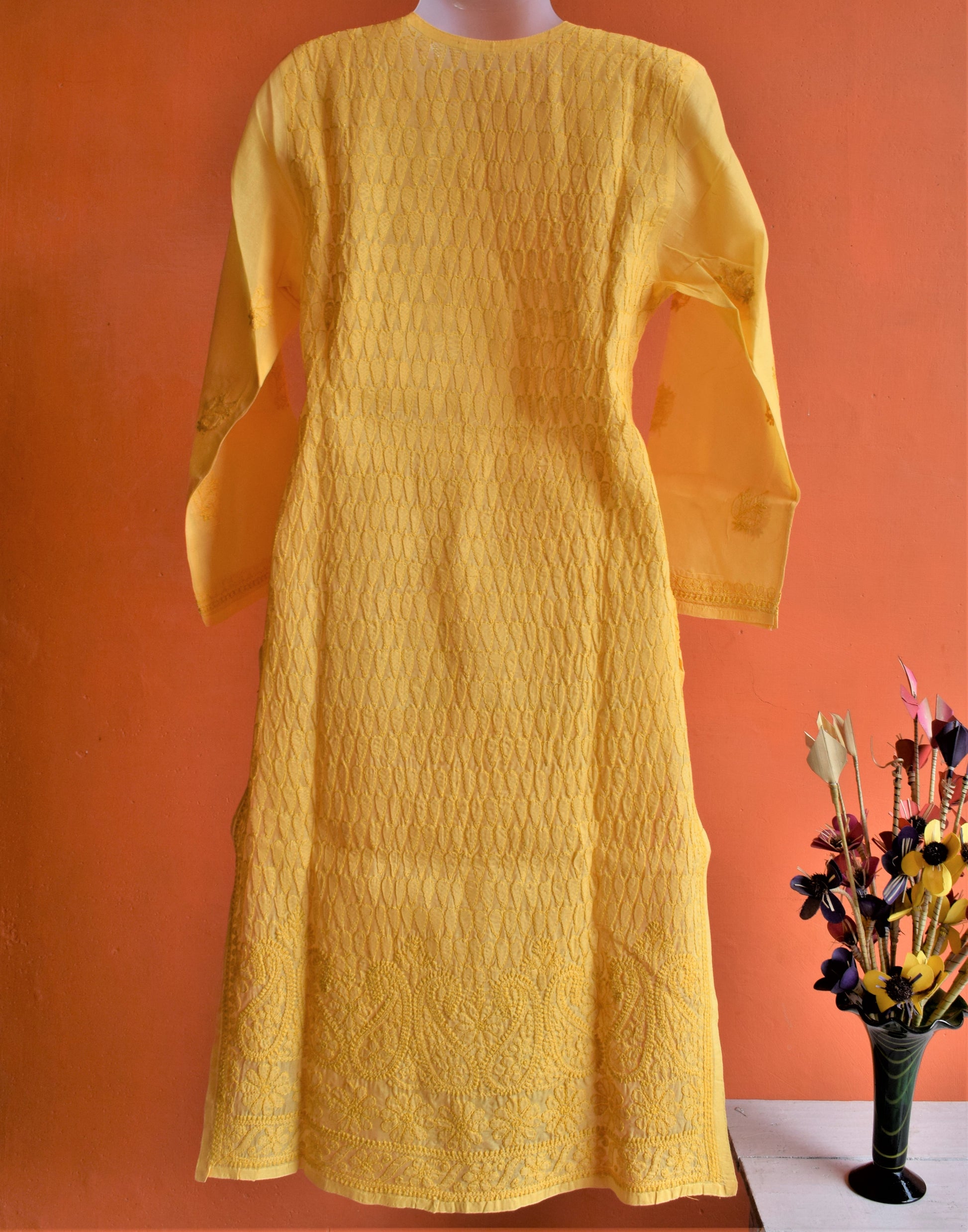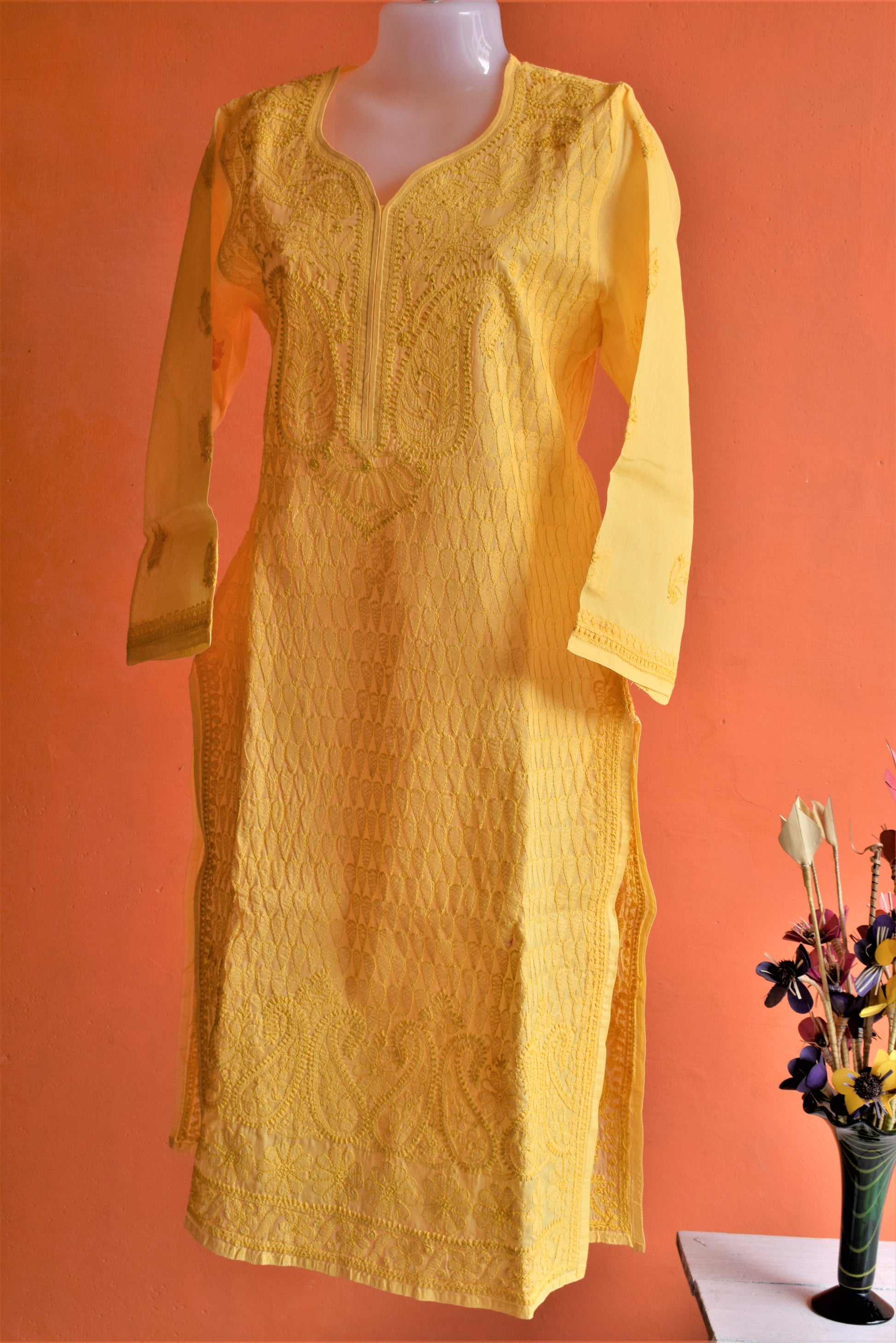 Pure Cotton Yellow Kurti with Chikan Embroidery