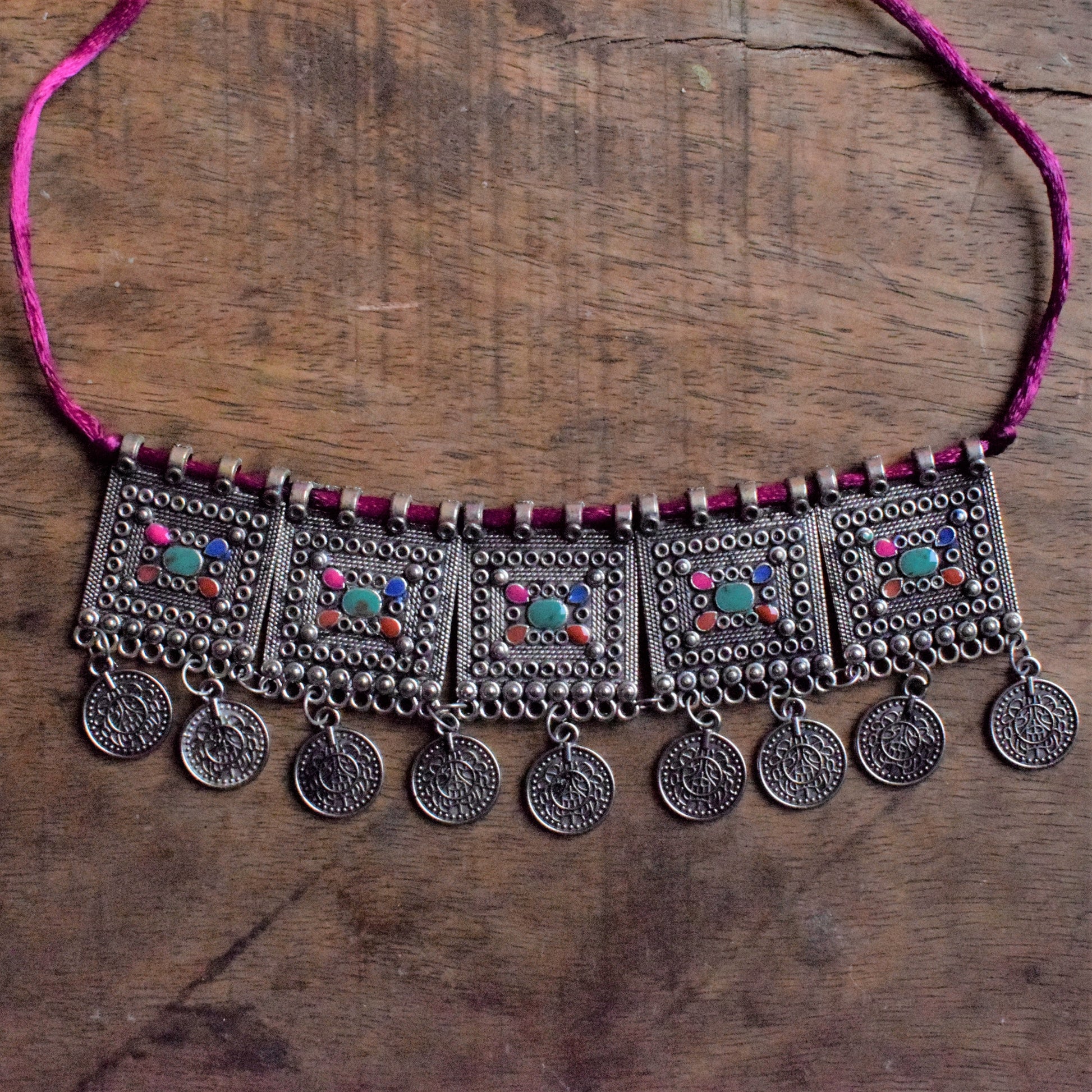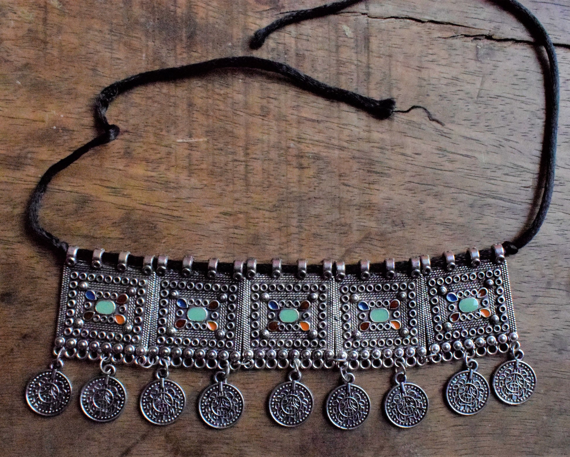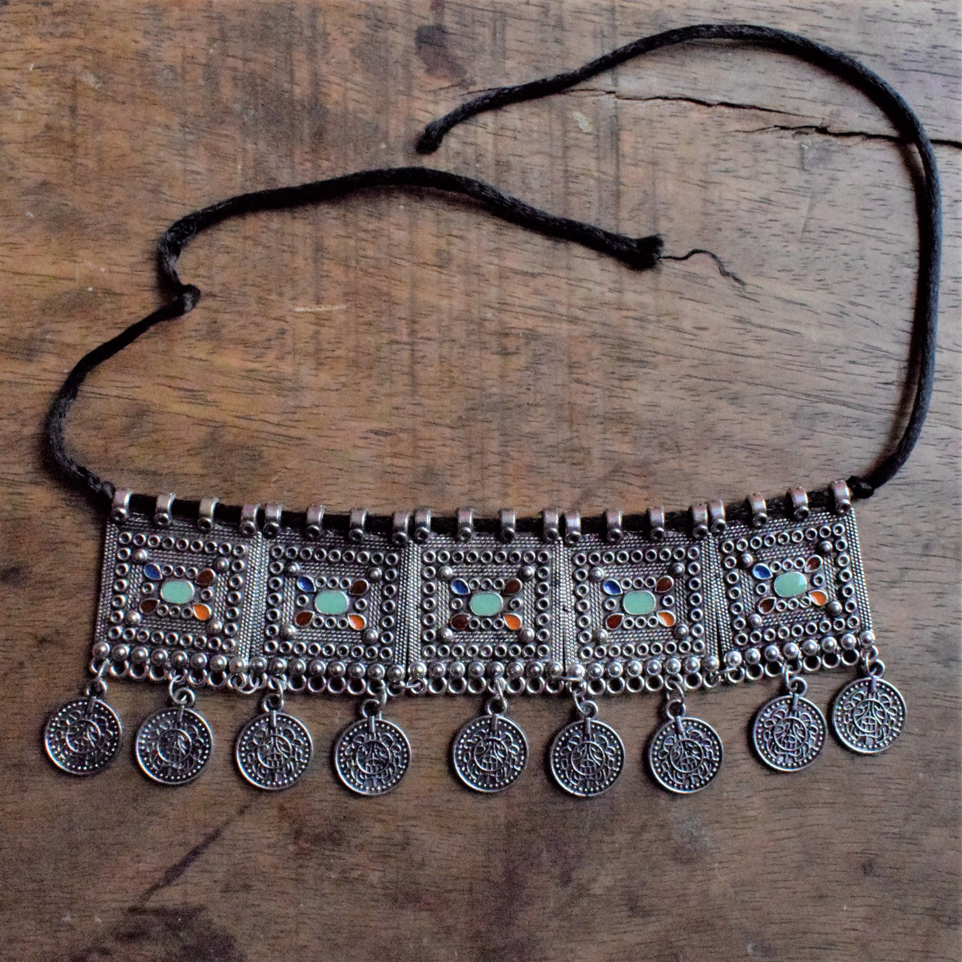 Silver Afghani Coin Choker Necklace