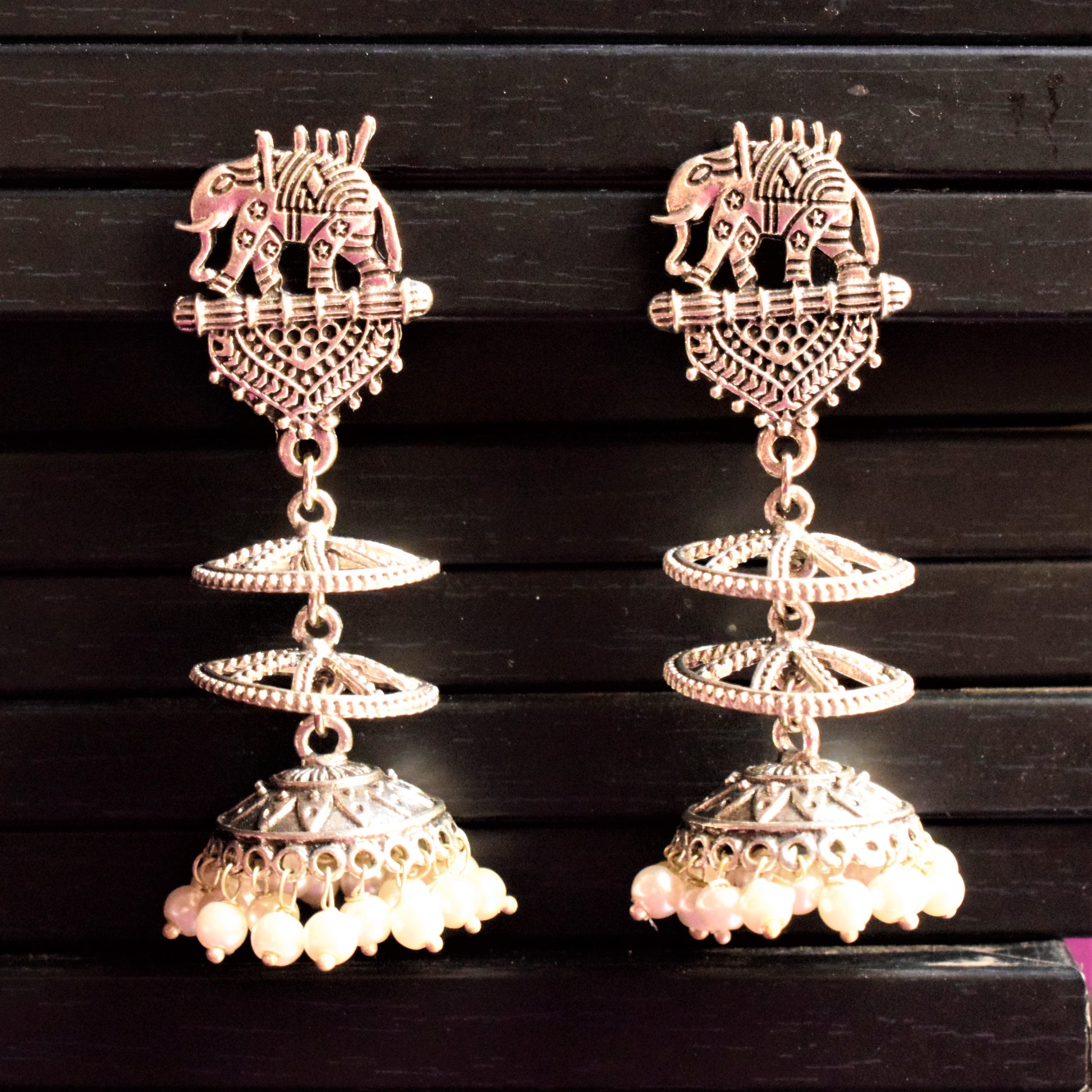 Silver Oxidised Elephant Stud Chatri Jhumka