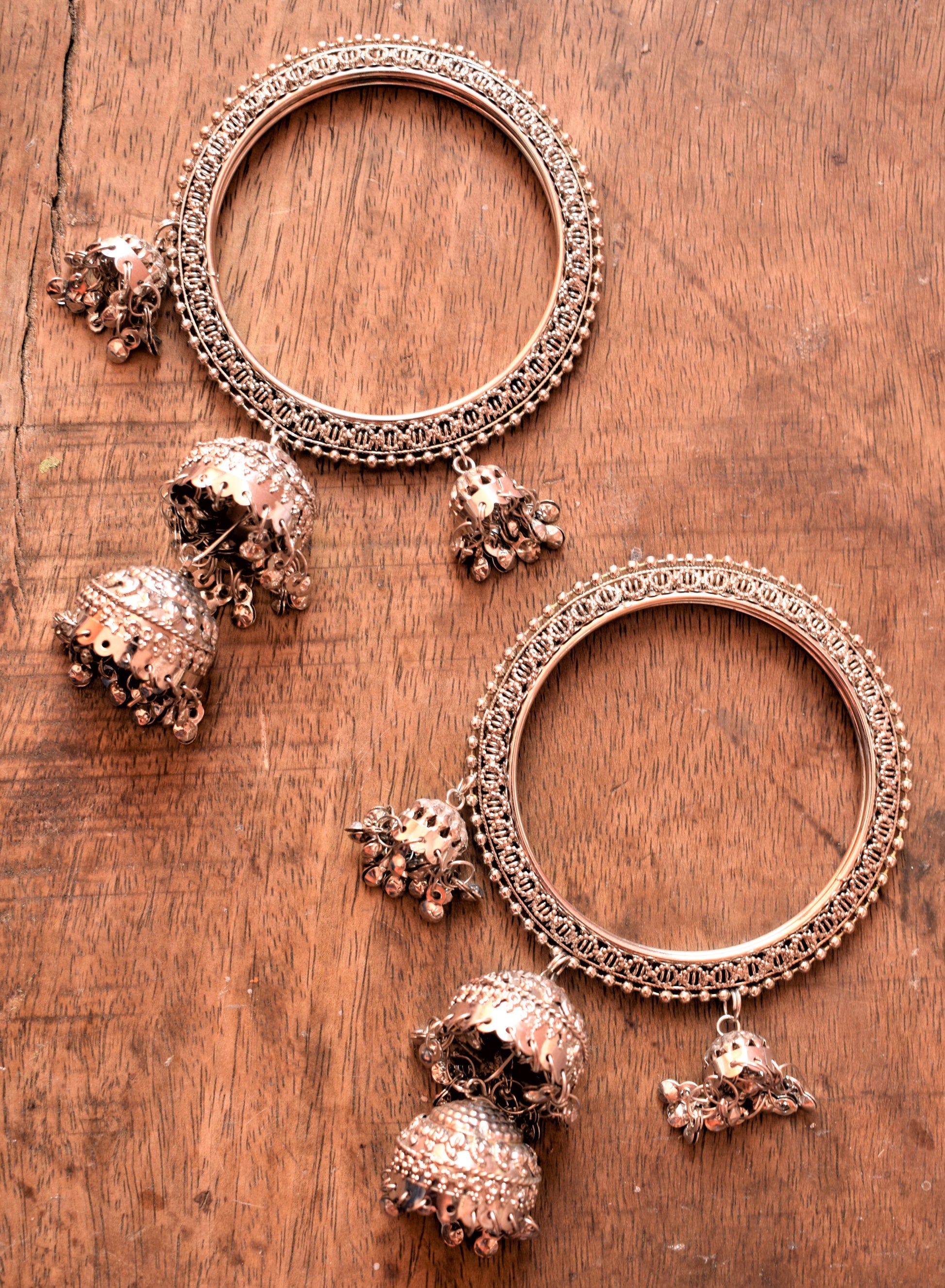 Silver Oxidised Jhumka Bangles