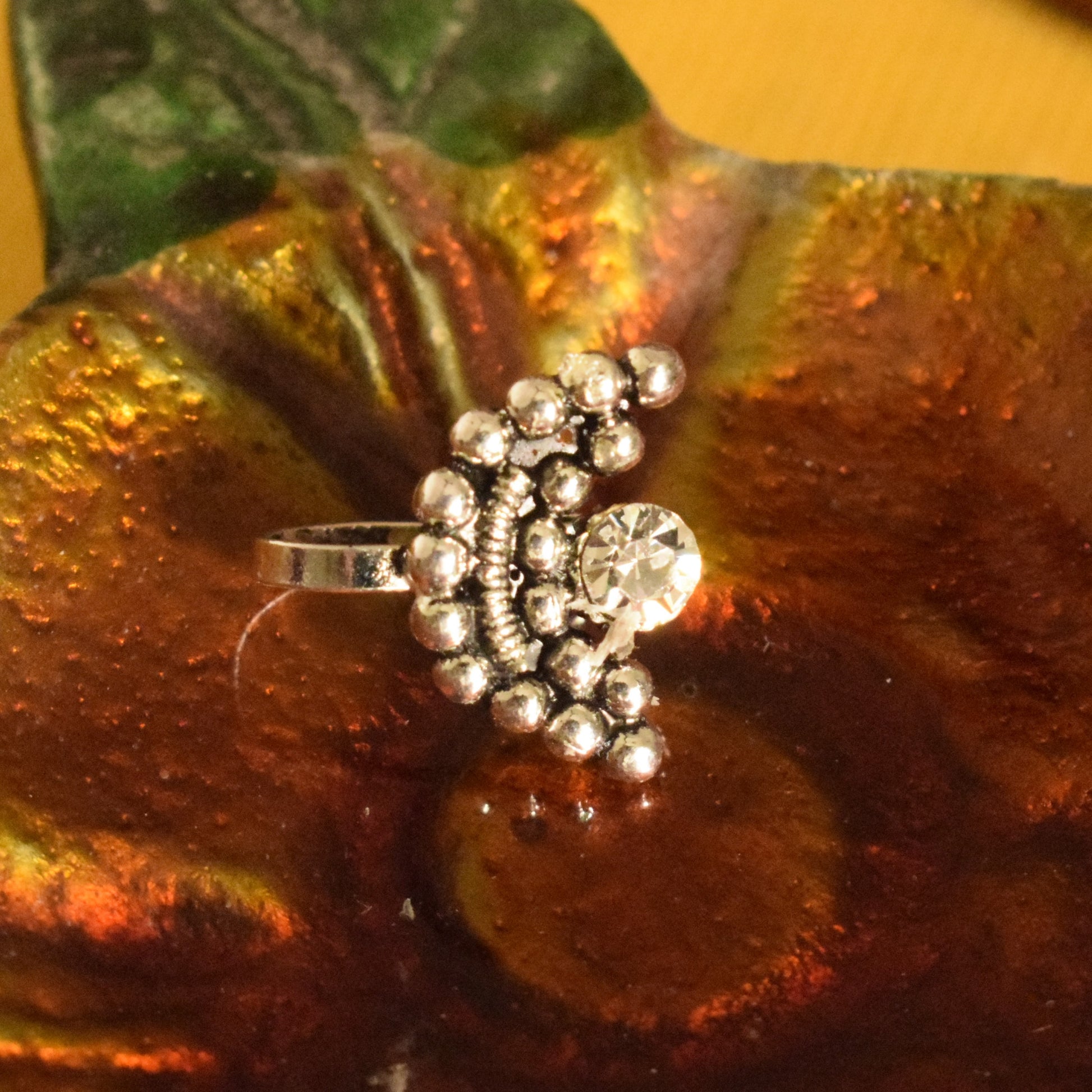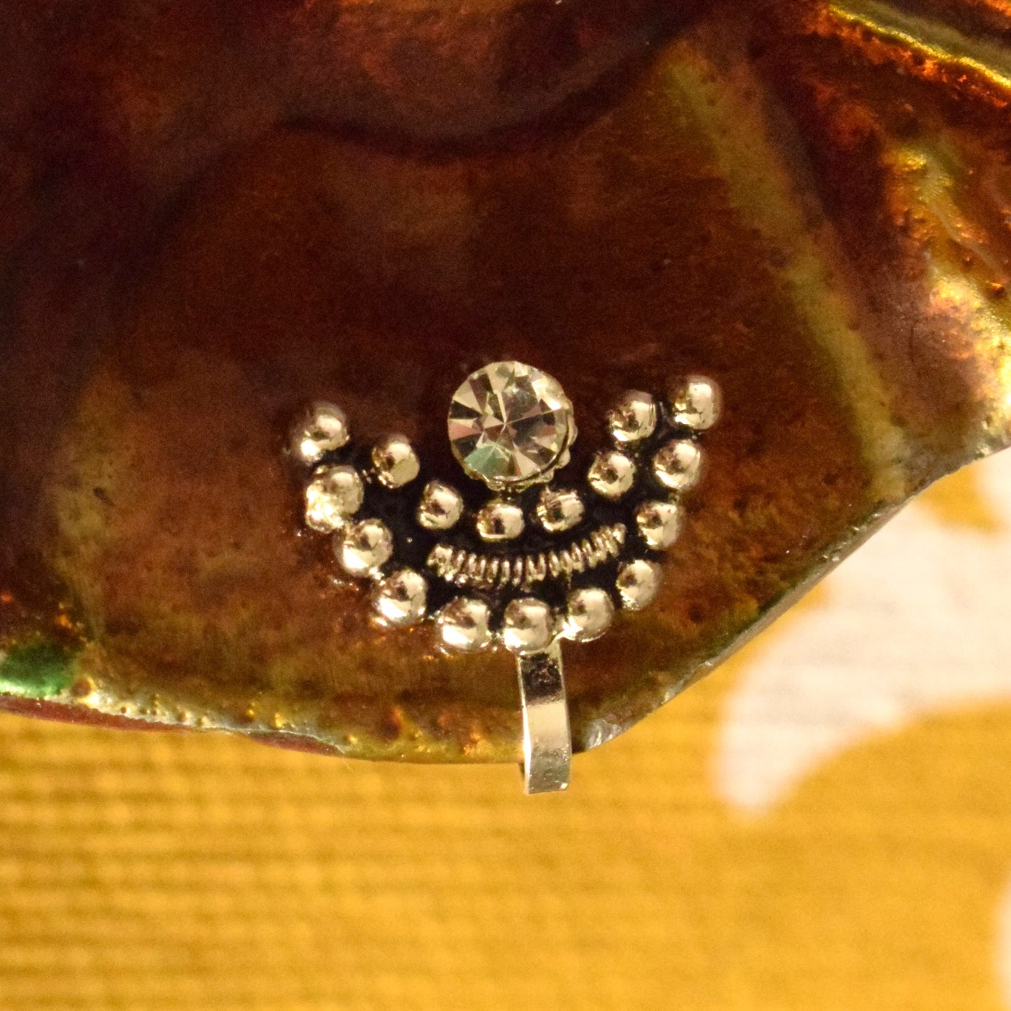 Silver Oxidized Hemispherical Crystal Nose Push Pin (for Non-Pierced Nose)