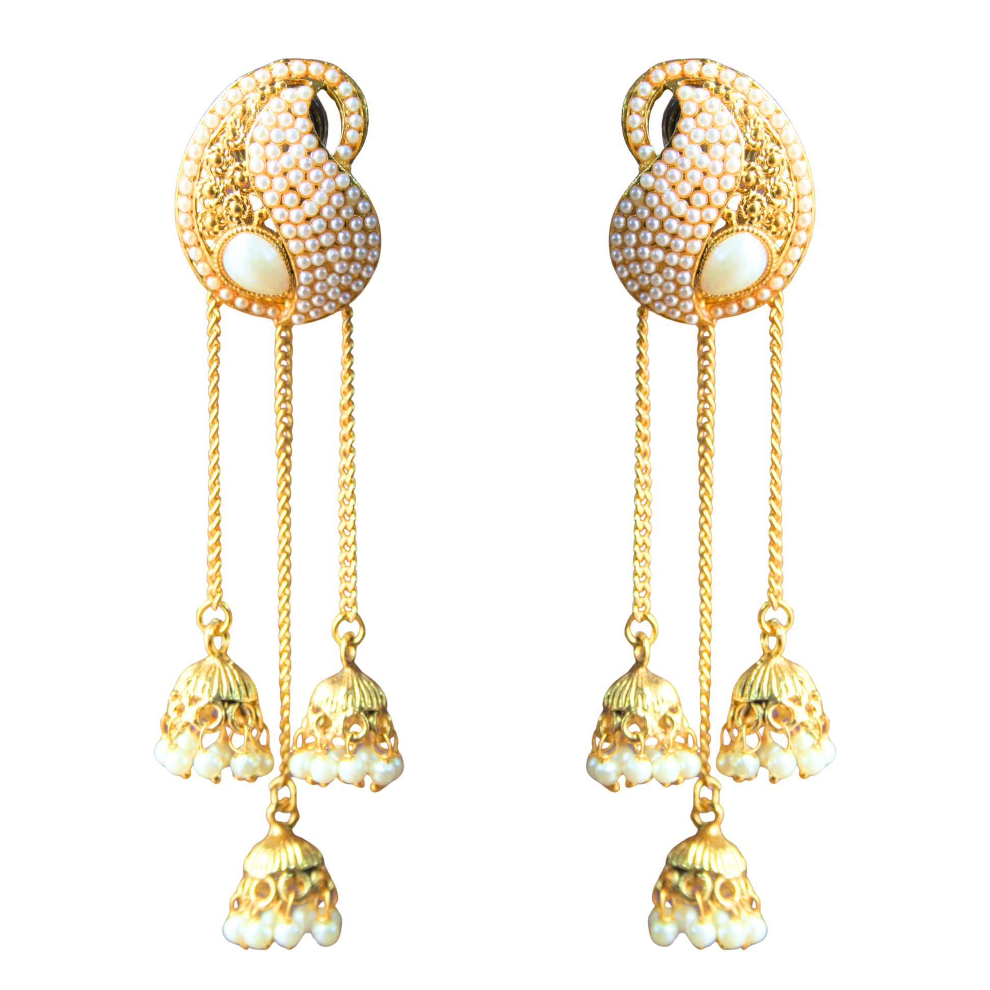 Traditional Pearl and Gem Multiple Jhumki Tassel Earring to give you an elegant appearance